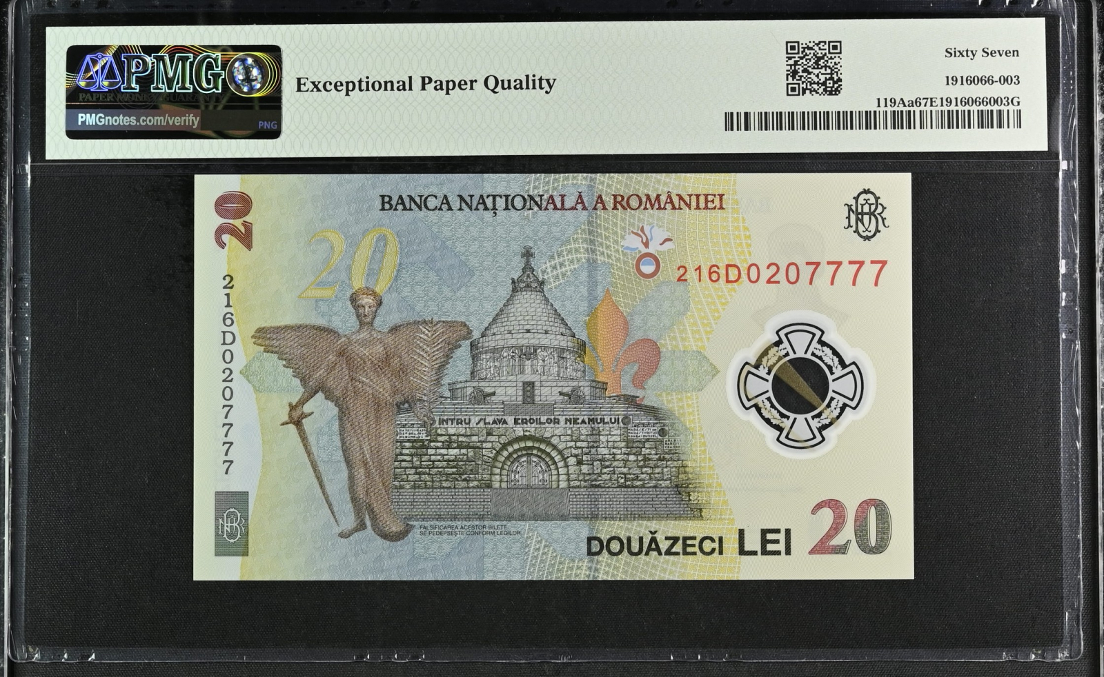 Romania, BNR, 20 lei 2021 P119Aa PMG Superb Gem Unc 68 EPQ
