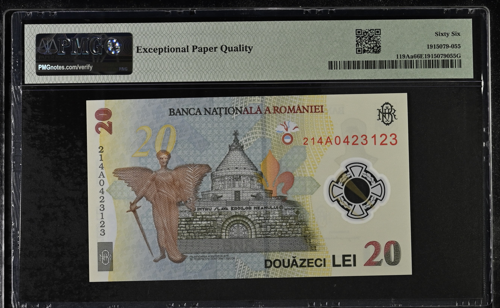 Romania, BNR, 20 lei 2021 P119Aa PMG Gem Uncirculated 66 EPQ