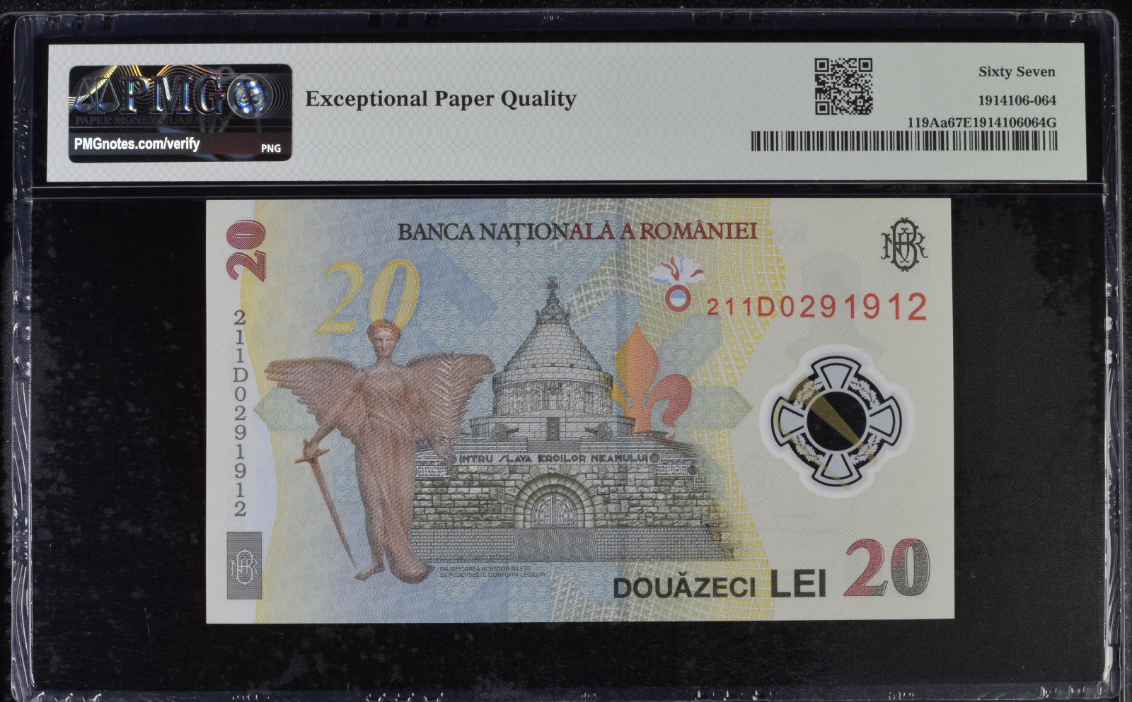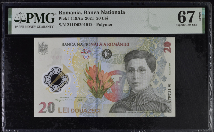 Romania, BNR, 20 lei 2021 P119Aa PMG Superb Gem Unc 67 EPQ